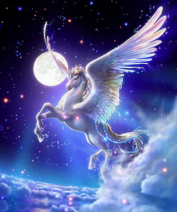 *เพกาซัสเป็นม้าสีขาวมีปีกไม่มีเขา แตกต่างจากยูนิคอร์นที่มีเขาแต่ไม่มีปีก ส่วนม้าที่มีทั้งปีกและเขาเรียกว่าอัลลิคอร์น